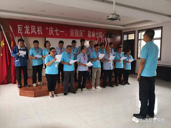 巨龍風(fēng)機“慶七一、迎國慶”歌詠比賽,得到了公司領(lǐng)導(dǎo)的大力支持,公司各部門在百忙中組織人員積極參加活動,為活動圓滿成功舉辦增添助力!